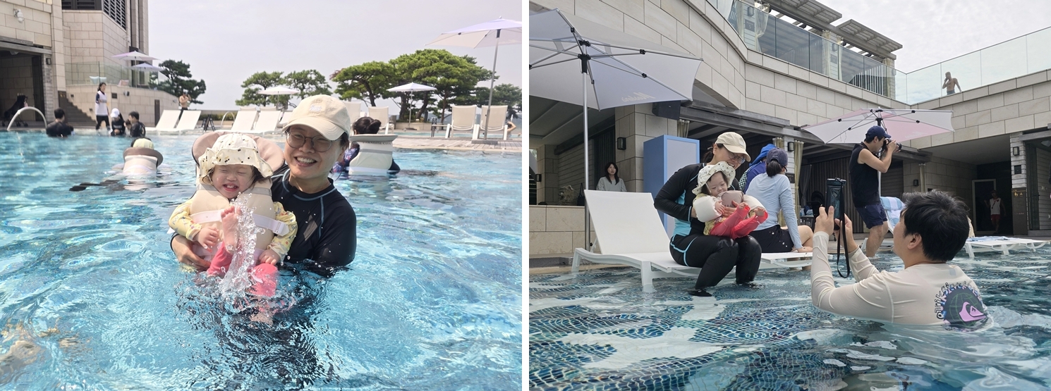 서진이는 금세 제 손을 잡고 뛰어다녔고, 호텔 수영장에서 물놀이를 하는 내내 함께했습니다. 그 웃음소리에 저도 모르게 미소가 번졌습니다. 혜진이도 낯을 많이 가린다고 해서 조심히 다가가고 있었는데, 함께 수영장에 다녀오니 저를 보고 환하게 웃어주더군요. 기분이 좋았습니다. 혜진이의 부모님은 오히려 제가 힘들지 않도록 무척이나 배려해 주셨습니다. 그 따뜻한 마음이 느껴져 감사했습니다.
