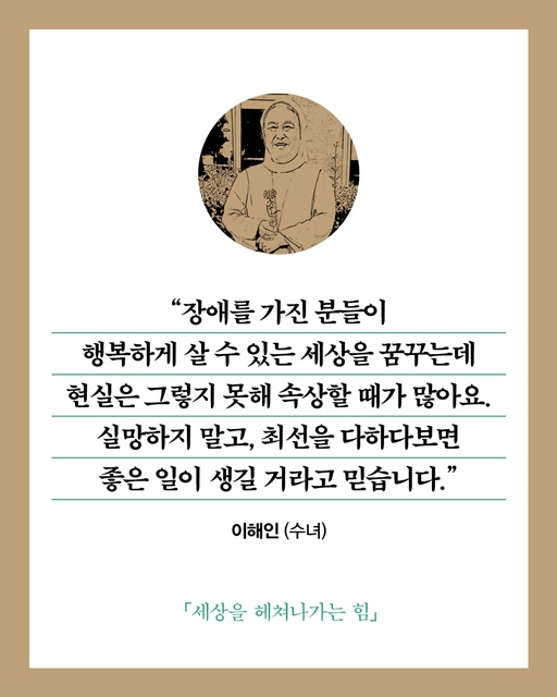 2024년 기준 등록장애인 수는 약 263만 명으로 전체 인구의 5.1퍼센트에 달합니다. 그중 80% 이상이 비장애인으로 살았던 중도장애인입니다. 언제든, 누구든 예기치 않은 일을 겪을 수 있기에, ‘장애’는 결코 남의 이야기가 아닙니다. 아내의 교통사고 후 백경학 대표의 삶도 예상치 못한 방향으로 바뀌었습니다. 하지만 셀 수 없이 많은 러닝메이트가 그와 함께 뛰어주었기 때문에 포기하지 않고 꿈을 위한 여정을 이어올 수 있었습니다.