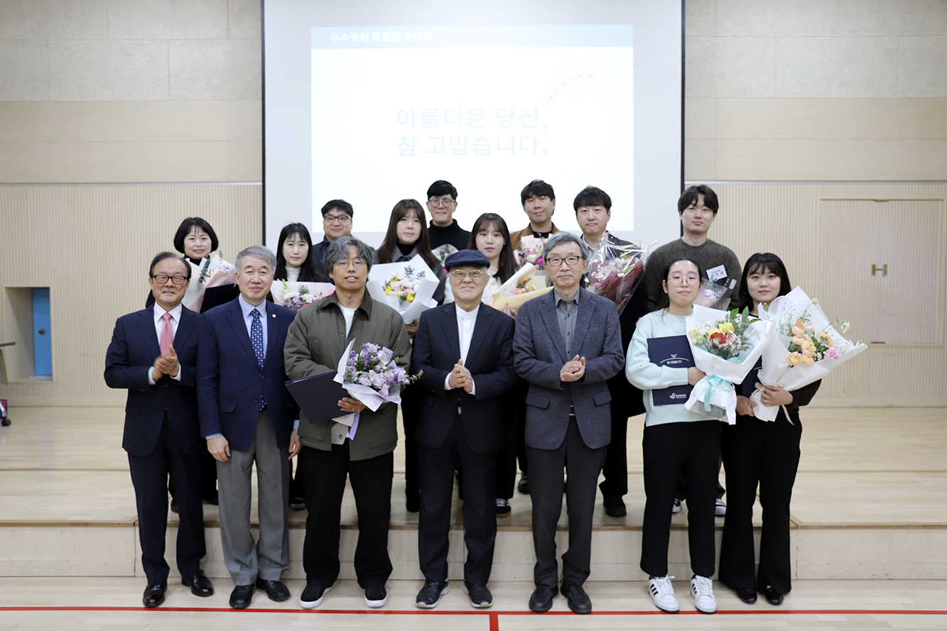 2025년 우수직원 표창을 받은 직원들(위)과 최우수직원 표창을 받은 푸르메소셜팜 이진교 주임