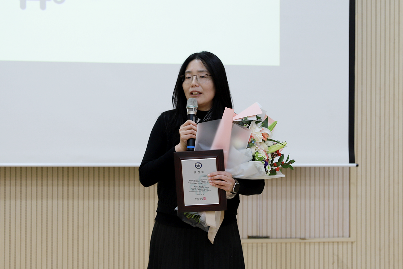 이어서 공개된 우수기관 표창장의 주인공은 종로장애인복지관입니다. 장애인이 지역사회의 구성원으로서 주체적인 삶을 살 수 있도록 돕고 있지요. 특히 지난 12월 말에는 영부인 방문 일정 가운데 장애인의 삶의 질 향상과 권리 보호의 필요성을 전하기도 했습니다. 김은영 종로장애인복지관장은 “지역에 계신 장애인과 가족 여러분의 ‘보통의 삶’을 잘 지원하도록 힘쓰겠다”라며 감사를 전했습니다.