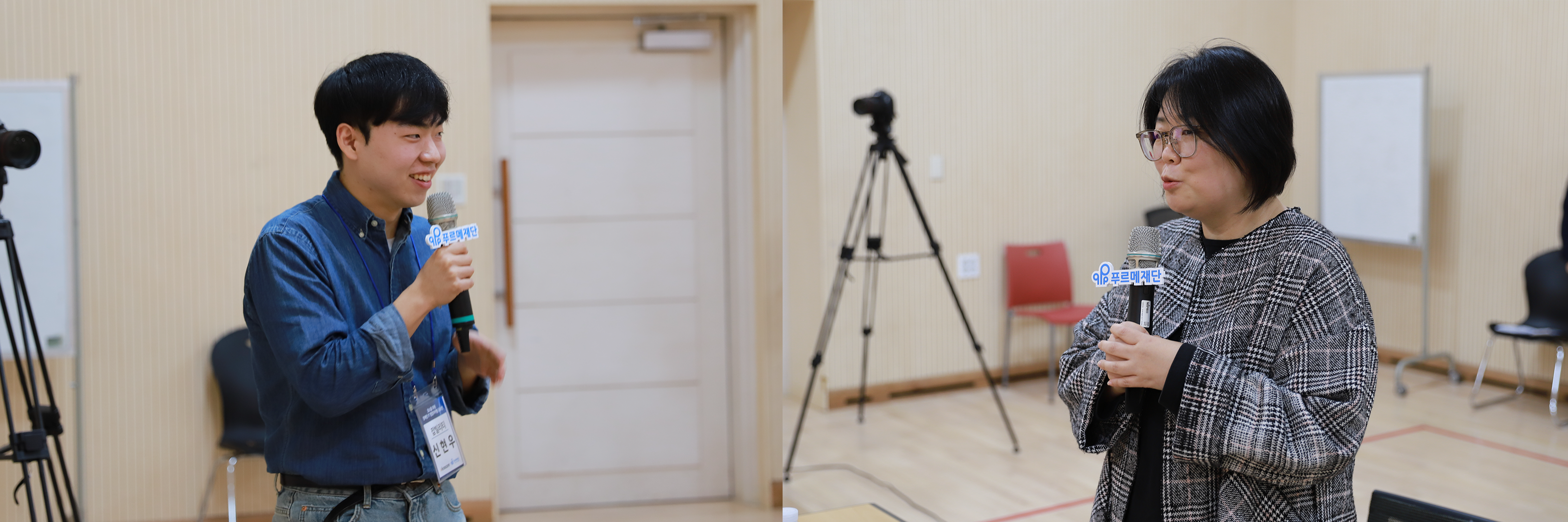 작년 1회 공모전 선정팀인 ‘㈜스코플 잡빌리티’ 신현우 대표, ‘깡깡하게 잘크자’ 이은영 대표도 자리해 2회 선정팀을 향한 축하 인사와 근황을 전했습니다. 성과 향상을 비롯해 지자체, 국내 및 해외 기업과의 협업 등 반가운 소식을 들을 수 있었지요.