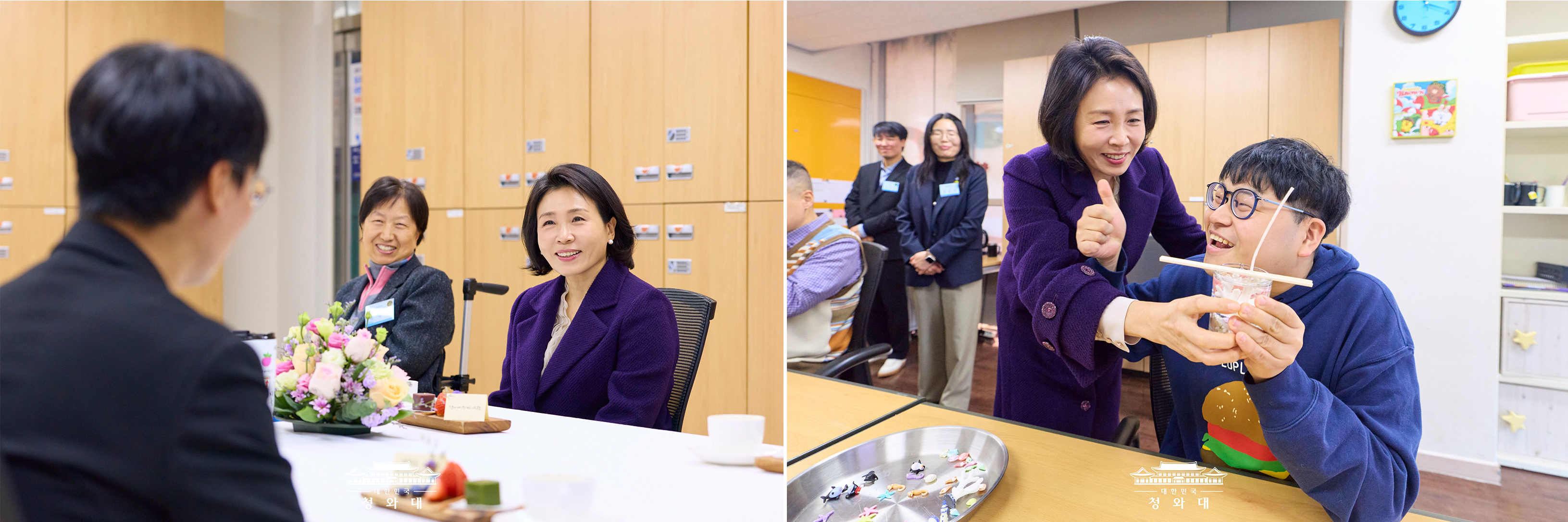 김혜경 여사는 이번 방문을 통해 장애인이 지역사회에서 보통의 삶을 누릴 수 있도록 모두가 힘써야 한다고 힘주어 말했습니다.
