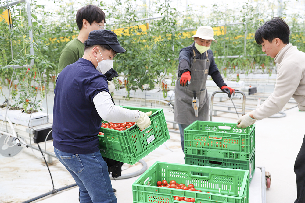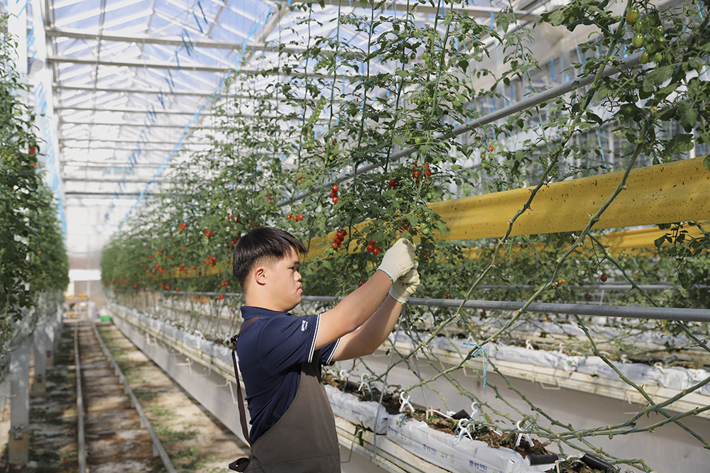 국내 최초 장애인 스마트팜인 푸르메소셜팜에서는 55명의 발달장애 청년이 정직원으로 일하며 방울토마토를 키웁니다. 재배와 생산 관리에 집중한 지난 2025년에는 ‘연 생산량 42% 증가’라는 역대 최고의 성과를 거뒀지요. 장애인을 고용하고 정당한 대가를 지급하며, 사회생활에 필요한 다양한 교육을 제공하는 모범적 일자리로서 세계적인 디자인 축제인 ‘광주디자인비엔날레’에서 포용디자인의 사례로 소개되기도 했습니다. 2023년부터 발달장애 청년농부들과 동고동락하는 재배팀 이진교 주임은 이런 성과의 일등 공신입니다. 올 초 시무식에서 ‘2025 푸르메 최우수 직원’으로 뽑히기도 했습니다.